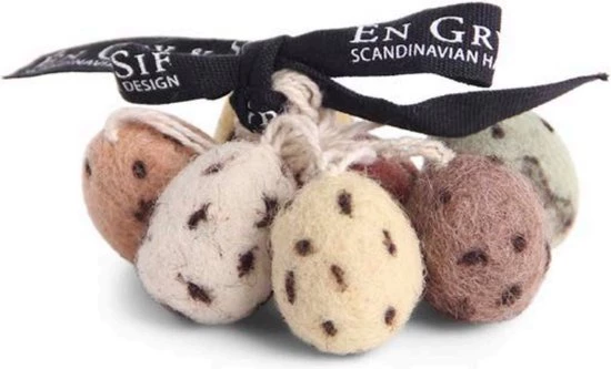 De lieve kleine eitjes zijn gemaakt van vilt en voorzien van een touwtje zodat je ze meteen kunt ophangen.