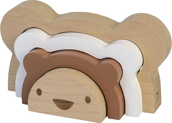 Deze beer van Eco-vriendelijk Hout kan je op vele manieren stapelen. Dit maakt de stapeltoren tot leerzaam speelgoed waarmee je de fijne motoriek van je kindje kunt trainen. De kleuren van deze duurzaam geproduceerde stapeltoren zijn naturel hout, wit en bruin waardoor de stapeltoren een mooie accessoire is op iedere babykamer.