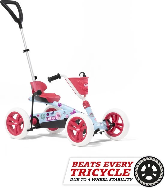 De BERG Buzzy is er nu ook als BERG Buzzy 2-in-1. Deze stabiele skelter is daardoor ook te gebruiken als duwauto waardoor je met je kind gemakkelijk en veilig op pad kan. Door de duwstang schiet je lekker op en houdt je controle over skelter en kind. Door de enorme stabiliteit van de Buzzy blijft deze altijd veilig overeind. Ook bij bewegelijke kinderen, hobbels of kleine oneffenheden. Dit in tegenstelling tot de vele 2-in-1- driewielers die door de drie wielen veel minder stabiel zijn.