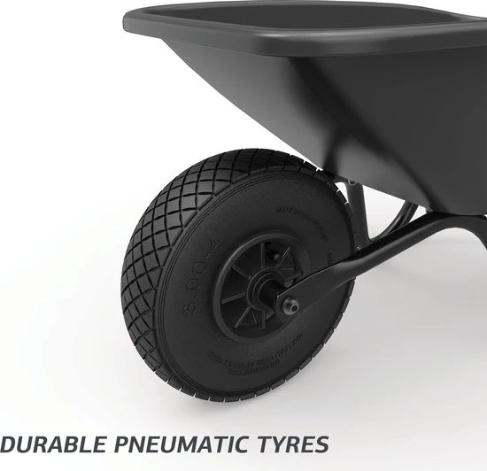 Incl. een echt kruiwagenwiel met luchtband en kogellagers voor gemakkelijk rijden.