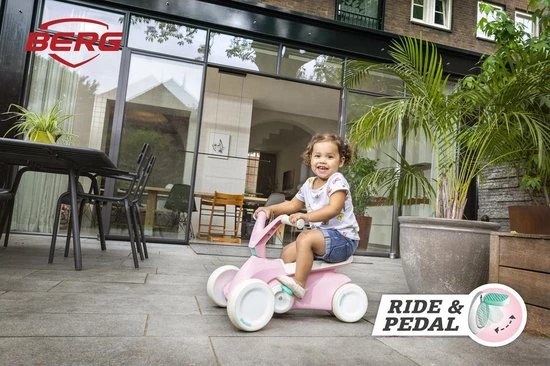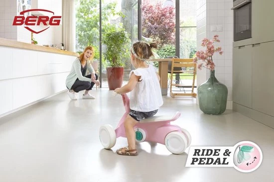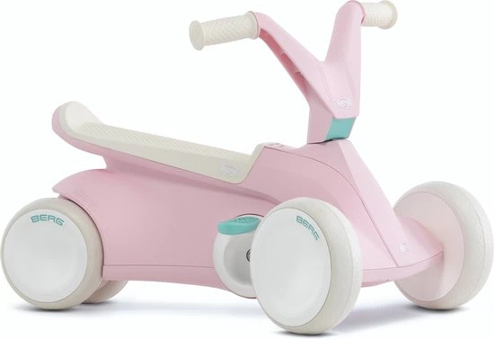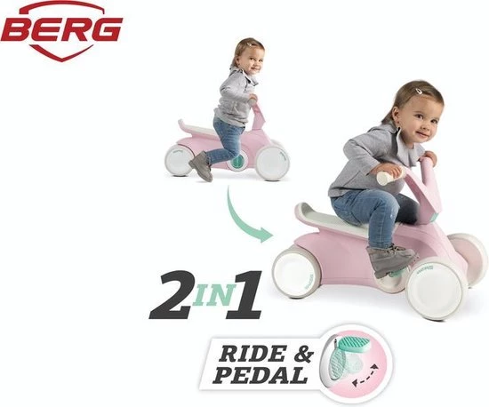 “De ontwikkeling van je kind begint op een BERG GO². De BERG GO² is onze strakke en ergonomische skelter voor de jongste kinderen! Kinderen vanaf 10 maanden leren eerst steppen met de pedalen ingeklapt. Voor je het weet gaat je kind de hele kamer steppend door. Klap vervolgens heel gemakkelijk de pedalen uit, zodat je kind de eerste ervaring op kan doen met skelteren!