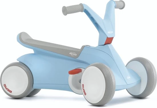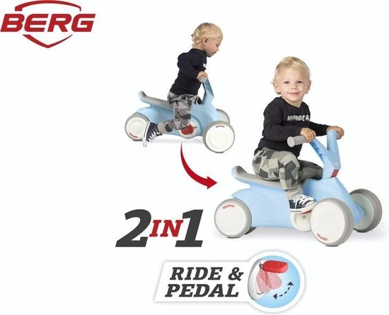 “De ontwikkeling van je kind begint op een BERG GO??. De BERG GO?? is onze strakke en ergonomische skelter voor de jongste kinderen! Kinderen vanaf 10 maanden leren eerst steppen met de pedalen ingeklapt. Voor je het weet gaat je kind de hele kamer steppend door. Klap vervolgens heel gemakkelijk de pedalen uit, zodat je kind de eerste ervaring op kan doen met skelteren!
