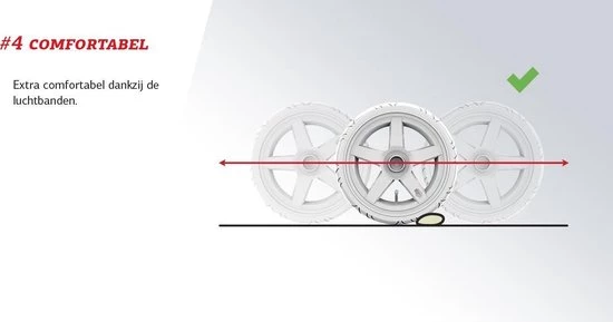 De BERG Rally heeft luchtbanden. Luchtbanden geven. minder rolweerstand dan massieve banden. Dit zorgt voor meer comfort en rijgemak. Het zorgt er ook voor dat je sneller kan rijden op een Rally.”