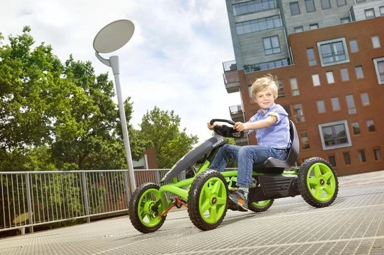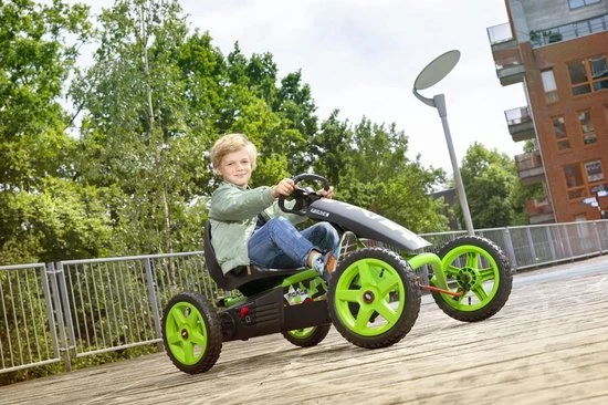 “Met de BERG Rally beleef je de mooiste avonturen. Deze coole sensatie is stabiel en veilig. Zelfs in de scherpste bochten blijf je stevig op de grond. Kortom, ontdek de wereld met deze stoere skelter. Je hoeft je je geen zorgen te maken tijdens je avonturen, want de BERG Rally voldoet aan alle veiligheidseisen. Door het BFR-systeem scheur je eenvoudig rond. De BERG Rally groeit jarenlang met je mee zodat je lang speelplezier hebt.