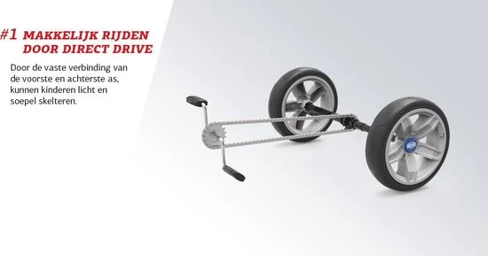 Direct driveDe BERG Reppy is uitgerust met een vaste verbinding tussen de voorste trapas en de achterste as. Dit betekent dat de beweging van de benen direct wordt omgezet in de beweging van de achterwielen. Dit maakt de BERG Reppy super eenvoudig en gemakkelijk te berijden. Zowel voor- als achteruit.