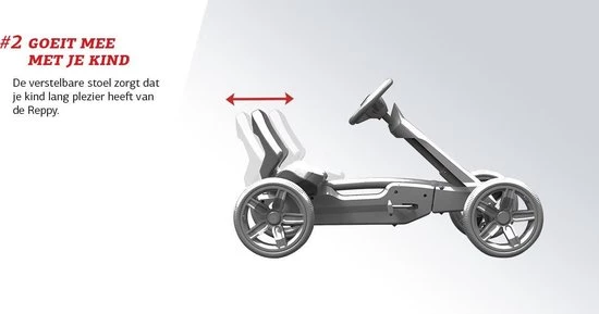 Groeit mee met je kindDe kuipstoel van de Reppy is makkelijk te verstellen door de draaiknop in de stoel. Hier is geen gereedschap bij nodig! Door de lage zitpositie is het niet nodig om het stuur te verstellen. In welke stoelpositie een kind ook zit, het stuur is altijd goed bereikbaar. De Reppy is gemaakt voor kinderen van 2,5 tot 6 jaar.