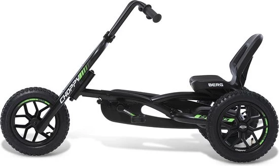 “De BERG Choppy Neo is de nieuwe stoere telg op basis van het Choppy platform. Stoere zwarte kleuren, off road banden en vette graphics maken de Neo tot een coole verschijning. In combinatie met het motorstuur waan je je the King of the Road.