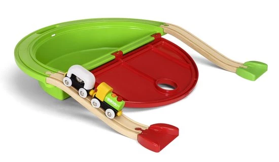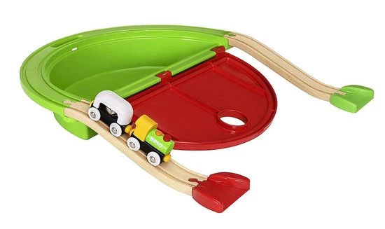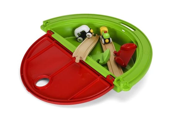 Een speciale travel treinset met heldere kleuren, speciaal voor jou! Neem hem mee op reis, of eals je op bezoek gaat, om te kunnen spelen waar je maar wilt. Open de tas en rijd de belwagen van de baan. Leuk om te gebruiken én makkelijk weer op te bergen.