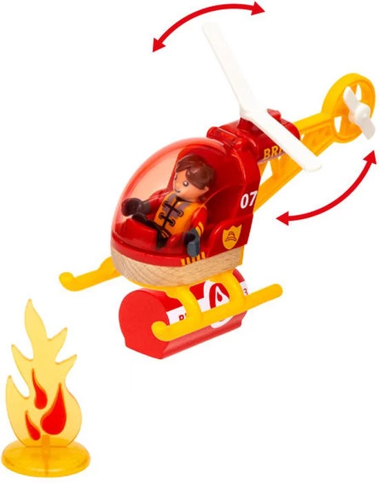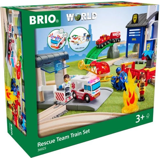 De brandweerlieden haasten zich in de brandweertrein en de helikopter naar de plaats van de brand. En er is meer hulp onderweg met de politiemotor die wegzoeft uit het politiebureau en de ambulance die met knipperende lichten en sirenes rijdt. Zodra de situatie onder controle is, stopt het team bij het rode vrachtstation om water bij te vullen zodat ze klaar zijn voor de volgende noodsituatie. Over BRIO World: BRIO World is ons open-eind speelgoed dat met je kind meegroeit. Al het BRIO World speelgoed, van onze treinrails tot onze voertuigen en personages, werken met elkaar samen om een volledig aanpasbare wereld te cre?ren die de creativiteit van kinderen uitdaagt. Er zijn eindeloos veel combinaties van fantasierijke spelletjes te ontdekken en deze treinset vol actie kan gecombineerd worden met elk ander BRIO World-product voor een rijkere speelervaring.