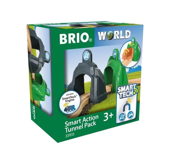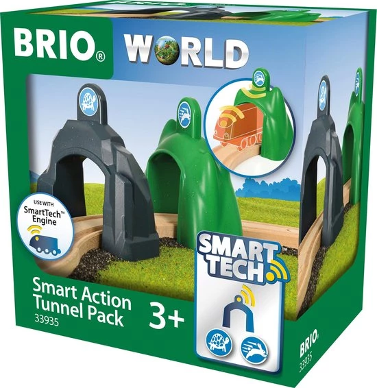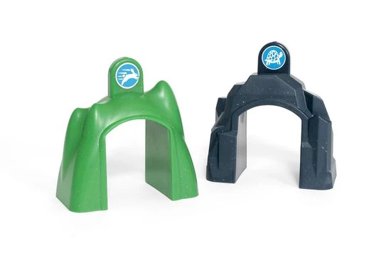 De Smart Tech actie tunnelset is precies wat je denkt – een set van tunnels die jouw Smart Tech trein extra actie brengt. Wanneer de trein door de tunnel gaat, maakt de locomotief geluid en doet wat er op het BRIO tunnel icoon staat: de schilpad laat de locomotief fluiten en remgeluiden maken, waarbij de trein langzamer gaat rijden. Het konijn laat de trein weer sneller rijden. BRIO Smart Tech speelgoed werkt het beste met de BRIO Smart locomotief, om de geluids- en actie effecten mogelijk te maken.