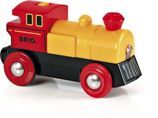 Kom op stoom met deze rode, op batterijen aangedreven locomotief. De voor- en achteruit functies ?n de werkende koplampen maken deze locomotief een must-have voor elke spoorwegfanaat!