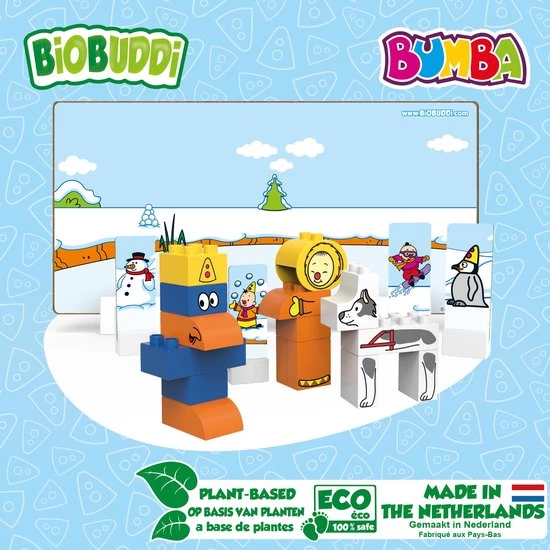 Dit keer landt Bumba in het prachtige land van de sneeuw. Hier ontmoeten hij Itoekoe, een eskimo. Bumba beleeft samen met Itoekoe en zijn circusvriendjes veel sneeuwpret. Bouw een hond, een pingu?n en de eskimo. Plaats Bumba , Itoekoe en alle andere karakters daar waar je wilt. Uren bouw en speelplezier voor kinderen is gegarandeerd met deze milieuvriendelijke speelset. De speelset bestaat uit 30 verschillende onderdelen. In de speelgoedset zitten verschillende gekleurde blokken. De blokken zijn ook uitwisselbaar met de blokken van andere merken. Ben je uitgespeeld met de set bouw je gewoon een eigen nieuwe creatie op. Er zijn oneindige mogelijkheden met de bouwblokken.