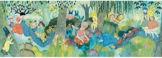 River party is een puzzel van 350 kleurrijke stukjes waarin een rivier van fantasie en verbeelding samenkomt.