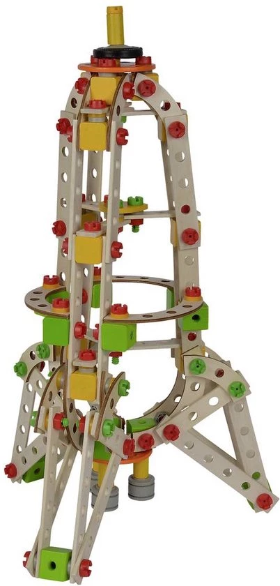 Eichhorn Constructor, 250-delig: Uit de 250-delige Eichhorn Constructor set kan met de handleiding een raket, een ruimteschip of een ruimteveer worden geschroefd. Met behulp van het bijgeleverde gereedschap, de handleiding en de schroeven worden de houten delen en verbindingselementen aan elkaar vastgezet en ontstaan de modellen. Natuurlijk kunnen met fantasie veel andere geweldige modellen ontstaan. De montage stimuleert en traint het ruimtelijke denken en de/fijne motoriek. Geschikt voor kinderen vanaf 6 jaar. Voor de productie van de Eichhorn-artikelen wordt uitsluitend FSC ? 100% hout van duurzame bosbouw gebruikt. Dit Eichhorn-artikel is Made in Germany. Het artikel is klimaatneutraal. De teksten voor dit artikel zijn automatisch vertaald.