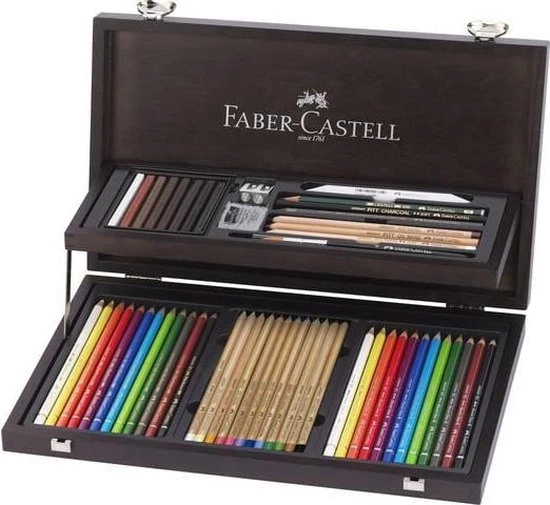 Faber-Castell Art & Grafic Compendium houten kist met diverse potloden -en kleurpotloden en accessoires