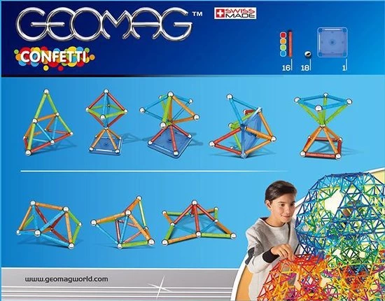 Geomag is een ingenieus en toch eenvoudig constructiesysteem met magnetische staven en stalen bollen, waarmee je oneindig veel figuren en driedimensionale constructies maakt. Dit super leuke speelgoed stimuleert het ruimtelijke inzicht, het ontwikkelt de bouwknobbel en zet aan tot creativiteit en logisch denken. De maximale kracht van de magneetjes zorgt ervoor dat de meest ingewikkelde constructies mogelijk zijn en met behulp van de panelen kan er extra stabiliteit worden aangebracht.