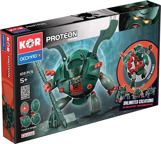 Kinderen zullen zich urenlang vermaken met de Geomag KOR Proteon. Laat jouw fantasie de vrije loop, draai aan de Proteon en maak oneindig veel verschillende figuren. De mogelijkheden met de KOR Proteon zijn eindeloos!
