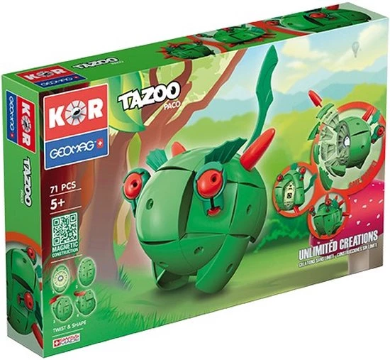Kinderen zullen zich prima vermaken met de Geomag KOR Tazoo. Laat jouw fantasie de vrije loop en maak oneindig veel verschillende figuren. De mogelijkheden met de KOR Tazoo zijn eindeloos!