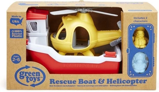 Met deze speelgoed reddingsboot met helicopter van Green Toys krijgen kids van alle leeftijden de kans om zijn of haar fantasie ten volle te ontwikkelen! Red badeendjes in nood en ga er net als de Seaking vandoor om snel andere stukken speelgoed te redden. Deze speelgoed reddingsboot is van verantwoorde oorsprong en van oerdegelijke kwaliteit.