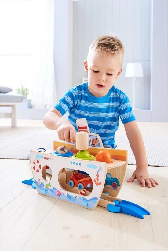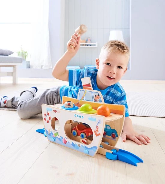 Zoek uit in welk gat de knikkers passen! Als je de juiste knikker door het gaatje hamert, zal er een leuk effect zijn. Met deze set zal je snel kleuren leren herkennen. Daarnaast stimuleert het spelen met deze knikkers het reactievermogen en de fijne motoriek.