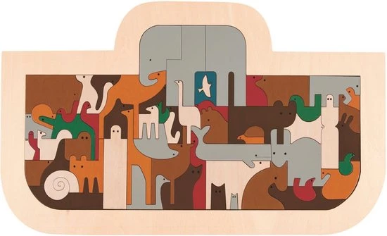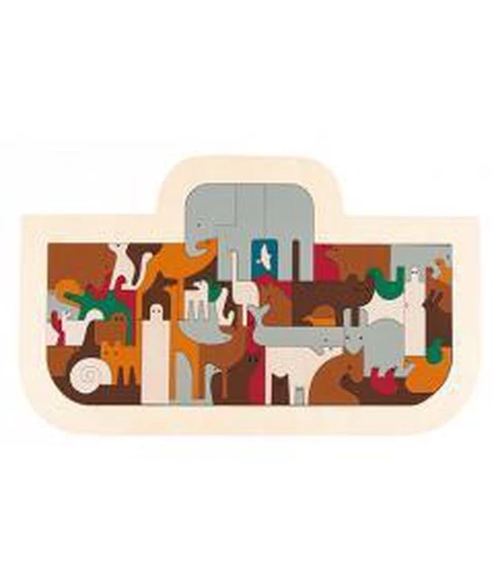 Ontdek welke dieren er zich op de Ark van Noa bevinden in deze mooi geïllustreerde en kleurrijke houten puzzel.