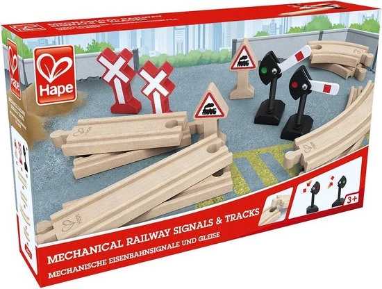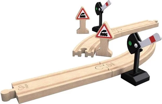 Bedien de seinen en beslis wanneer je treinen stoppen en rijden met deze set van mechanische seinen en sporen. Duw de arm van de seinpaal omhoog om je trein een groen ?ga’ signaal te geven en duw omlaag voor een rood ‘stop? signaal.