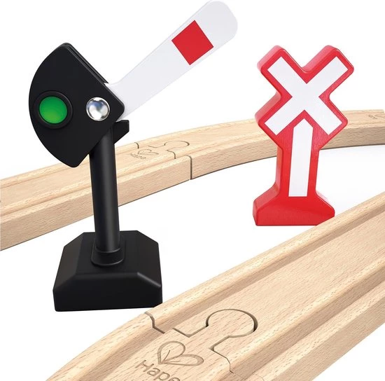 – Duw de arm van de seinpaal omhoog om je treinen een groen ?ga’ signaal te geven en duw omlaag voor een rood ‘stop? signaal.