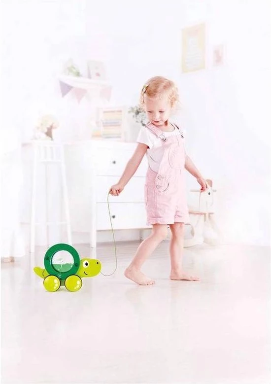 Neem dit lieve schildpadje overal mee naartoe. Kijk hoe het schild rolt en draait en hoe het water wervelt als je de schildpad meetrekt. Het trekdiertje moedigt je kind aan om zijn eerste stapjes te zetten. Schild kan apart worden gebruikt.