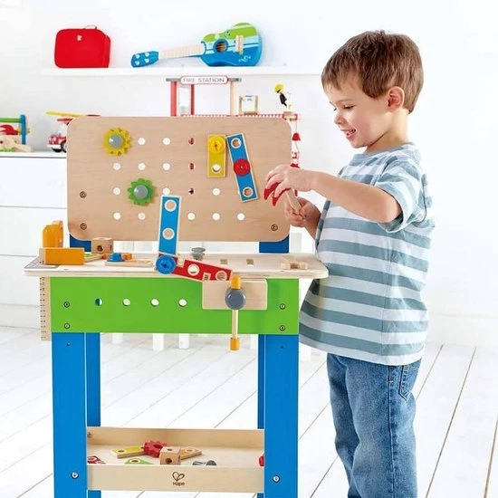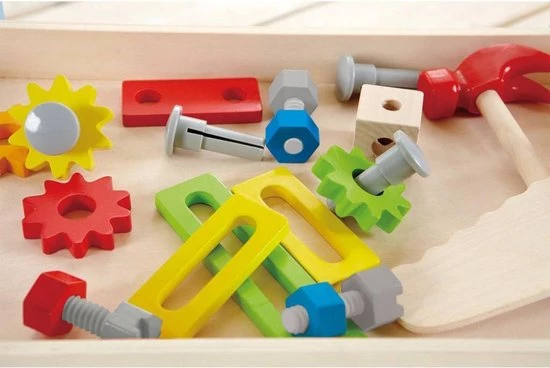 Grootse ideeën? Maak ze met deze houten werkbank van Hape! Dit stoere, kleurrijke speelgoed wordt compleet geleverd met allerlei gereedschap, bouten, moeren en ander materiaal waarmee je van alles kunt maken. Welke klusjes staan er op jouw agenda?