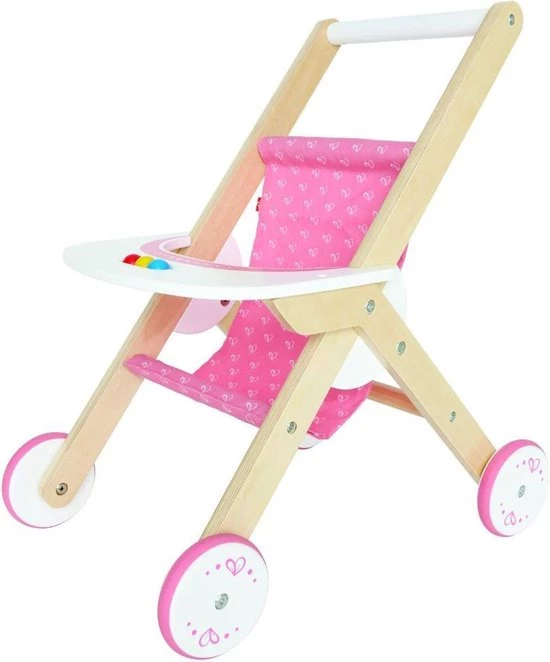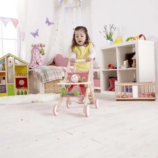 Met deze houten poppenwagen E3603 van Hape kunnen je kinderen hun imitatieve en fantasierijke spel een stap verder brengen door hun poppen mee te nemen.