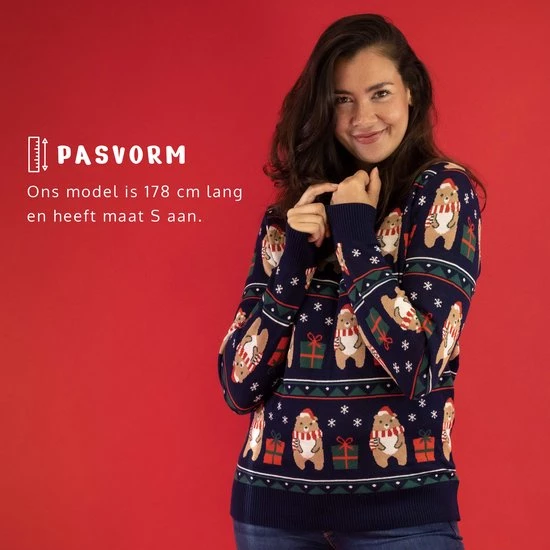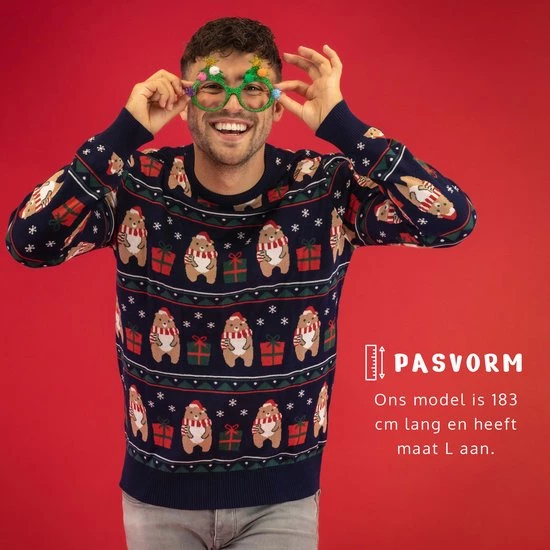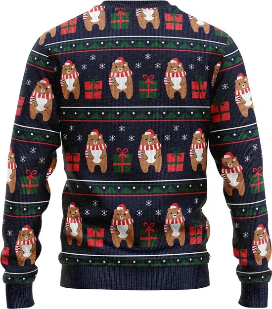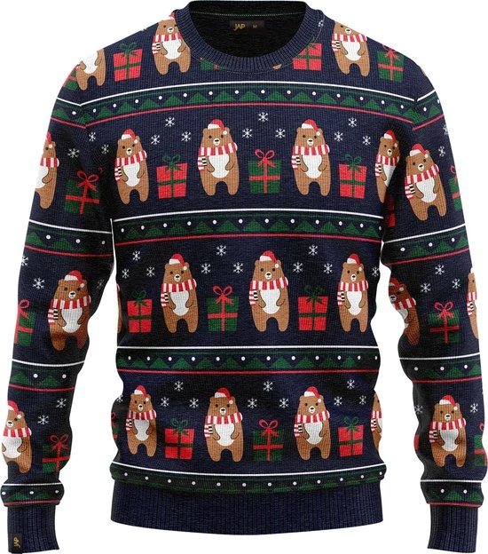 JAP Christmas JAP Foute Kersttrui – Beer Met Geschenk – Kerstcadeau Volwassenen – Dames En Heren – Kerst – M – Donker Blauw