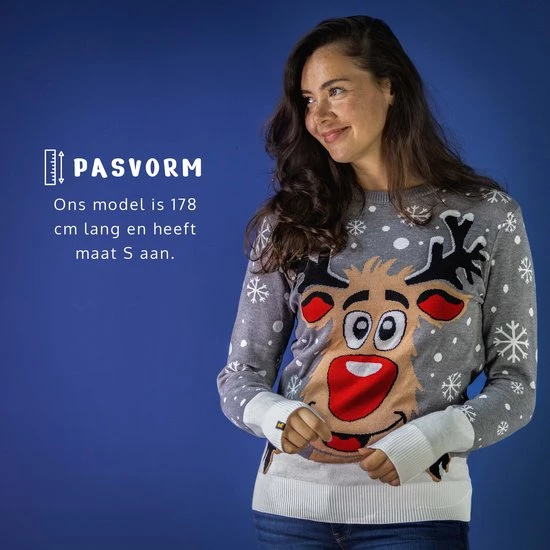 JAP Christmas JAP Foute Kersttrui – Rudolf Het Rendier – Kerstcadeau Volwassenen – Dames En Heren – Kerst – L – Grijs