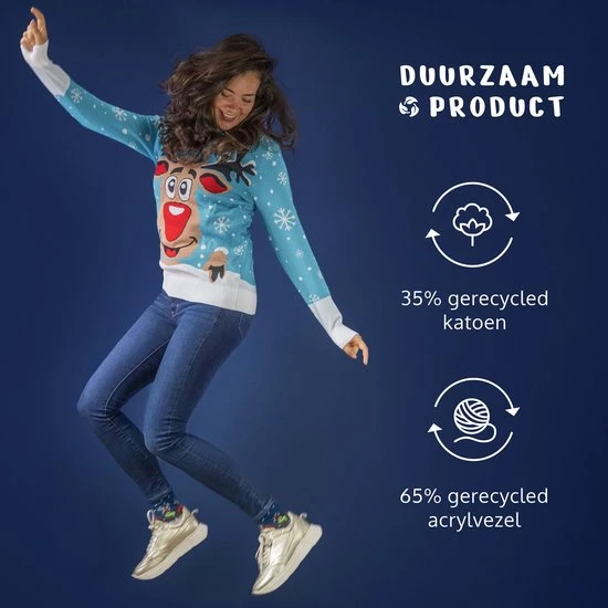 JAP Christmas JAP Foute Kersttrui – Rudolf Het Rendier – Kerstcadeau – Voor Kinderen – Kerst – 3/4 Jaar – Licht Blauw