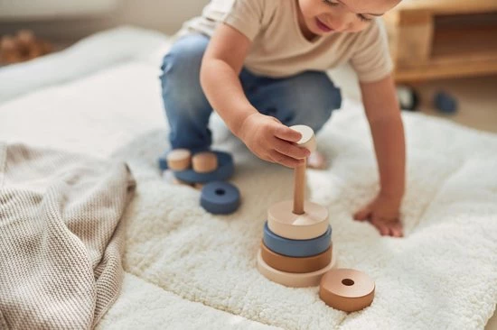 Het spelen met deze stapeltoren prikkelt de zintuigen en de fantasie van je kind om te ontdekken, te voelen, te kijken en te herkennen. Je kind leert zich concentreren en traint de oog-handco?rdinatie.