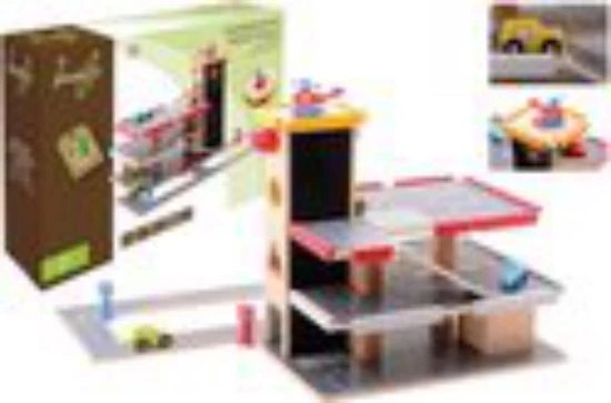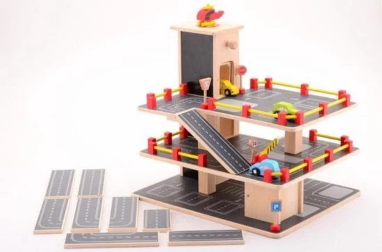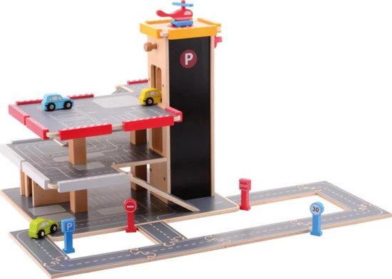 Deze mooie en uitgebreide autogarage is een lust voor het oog. Met de gekleurde auto’s en helikopter kan jouw kind urenlang spelen. Hij bepaalt zelf hoe de weg rondom de garage loopt en zet de verkeersborden neer. Gaan de auto’s met de lift omhoog en omlaag of rijden ze het hele stuk. De set is gemaakt van een duurzaam hout, dit zorgt ervoor dat de garage jarenlang meegaat!