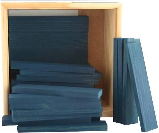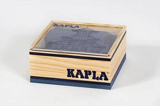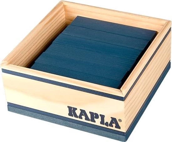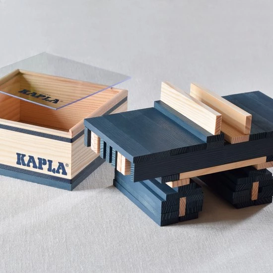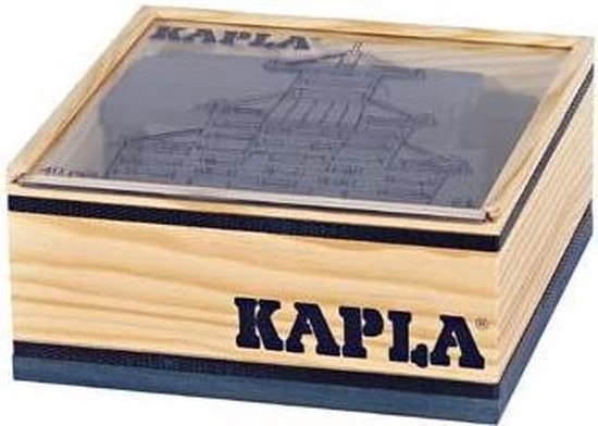 KAPLA Kleur doos met 40 grenenhouten plankjes van exact dezelfde ideale maatverhoudingen. De stevige doos is gemaakt van mooi afgewerkt hout met een deksel van doorzichtig plastic glas, waardoor je kunt zien welke kleur erin zit.