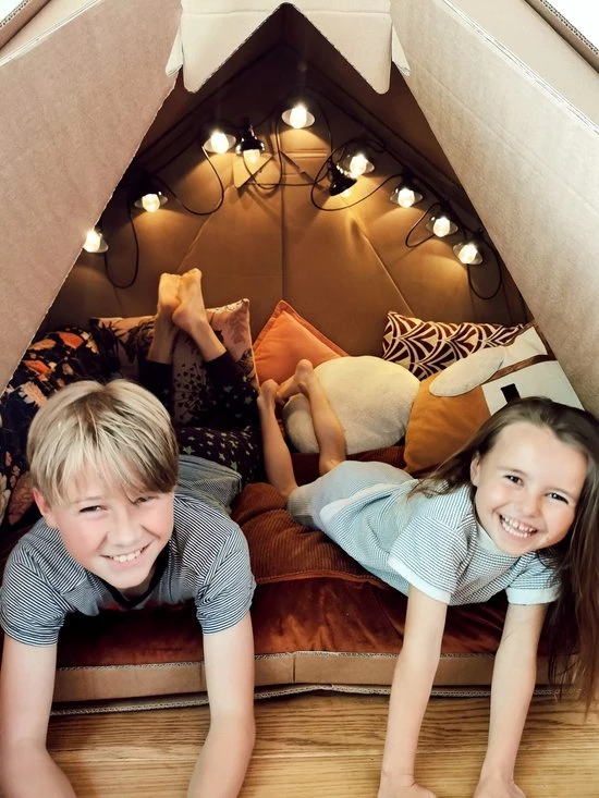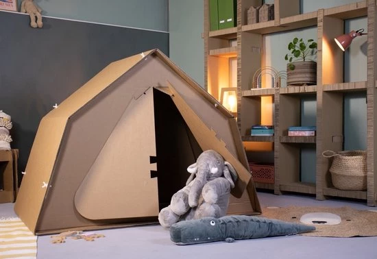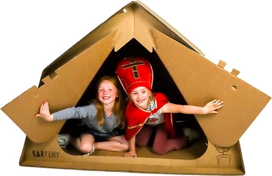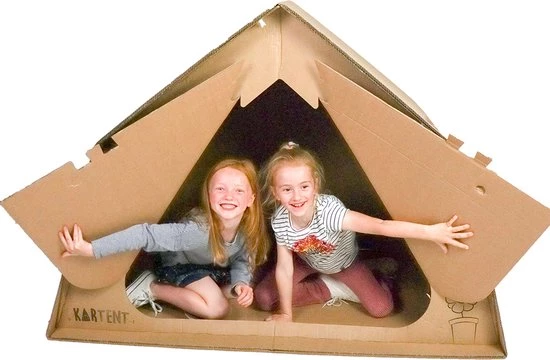 De KarTent Junior is een tent gemaakt van karton voor kinderen. Met deze speeltent kunnen de kids hun fantasie de vrije loop laten gaan! Het ideale cadeau voor kinderverjaardagen of gewoon op de kinderkamer. Met een beetje verf of stoepkrijt kunnen de kids dit speeltent volledig naar smaak inrichten!