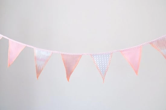 Doordat we met restmaterialen werken kan de door jou ontvangen vlaggenlijn wel iets anders zijn dan het product op de voorbeelden.