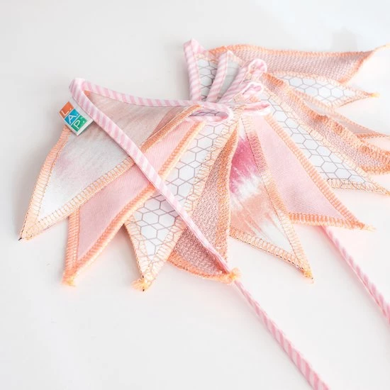 It’s a girl! Leuke versiering voor de babykamer. Origineel én verantwoord cadeau voor gender reveal, babyshower en geboorte. Deze roze mini-vlaggenlijn is gemaakt van kwalitatieve reststoffen die overblijven bij de gordijnproductie. Onze prachtige slingers van restmaterialen zijn uniek en gaan jaren mee. De vlaggenlijn bestaat uit 12 vlaggetjes en zit in een mooie cadeauverpakking. De cadeauverpakking is ook gemaakt van reststoffen en tevens te gebruiken als opbergzakje. De vlaggenlijn is een mix van patronen en kleuren. Elke vlaggenlijn is uniek.