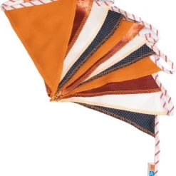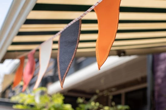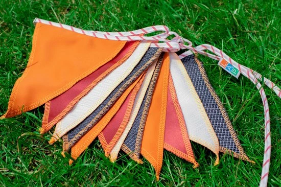Of het nu een EK, WK, Koningsdag of Bevrijdingsdag is: maak er een feestje van met onze juichvlaggetjes in de kleuren oranje-rood-wit-blauw. Deze stijlvolle en kleurrijke vlaggenlijn is gemaakt van kwalitatieve reststoffen die overblijven bij de gordijnproductie. Onze prachtige slingers van restmaterialen zijn uniek en gaan jaren mee. Door de mooie materialen is de vlaggenlijn niet alleen leuk voor een feestje maar ook als sfeervol woonaccessoire, bijvoorbeeld voor de kinderkamer. De vlaggenlijn bestaat uit 12 vlaggetjes, is 4 meter lang en zit in een mooi opbergzakje. De verpakking is ook gemaakt van reststoffen.