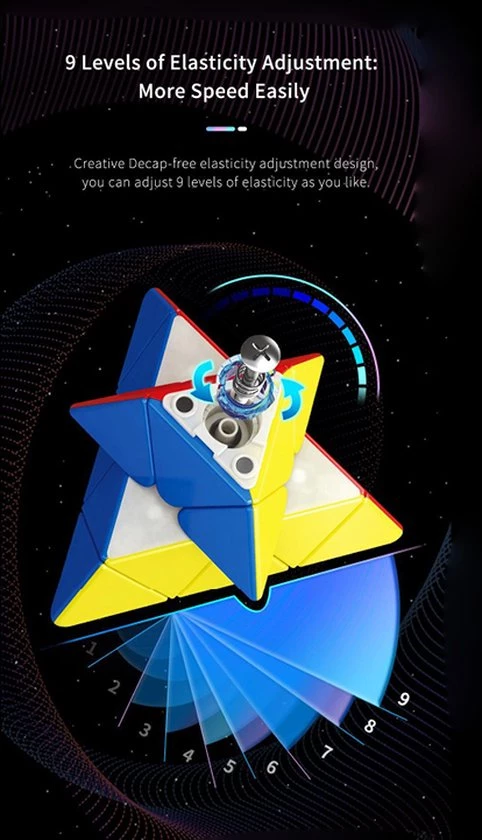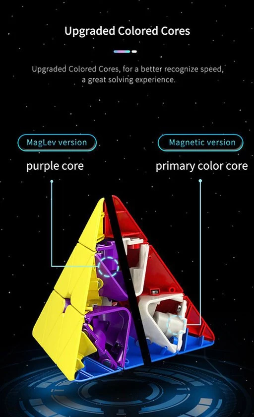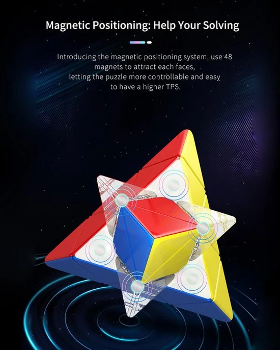 MoYu RS3 Pyraminx Magnetic is een spannende voortzetting van de meest populaire budgetserie, ?RS?, door MoYu. Deze speedcubes draaien erg soepel en zijn licht van gewicht. De belangrijkste kenmerken is het veercompressiesysteem (9 standen), frosted buitenkant wat zorgt voor betere grip. Inbegrepen: Veer compressie tool, schroevendraaier en een reserve compressie stuk.
