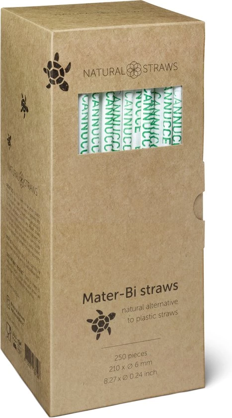 De biologisch afbreekbare flexibele rietjes hebben een lengte van 21 cm en een dikte van 6 mm.