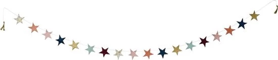 Haal vrolijkheid in huis met deze originele sterren slinger, perfect voor de kinderkamer, een verjaardag of kerst. De slinger tovert gegarandeerd een lach op je gezicht. Ook leuk om als kerstdecoratie in de kerstboom te hangen.
