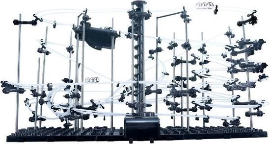 Zeer mooie knikkerbaan voor de oudere kinderen. De knikkers gaan via loopings en bochten kriskras door elkaar. Vinden ze de uitweg?