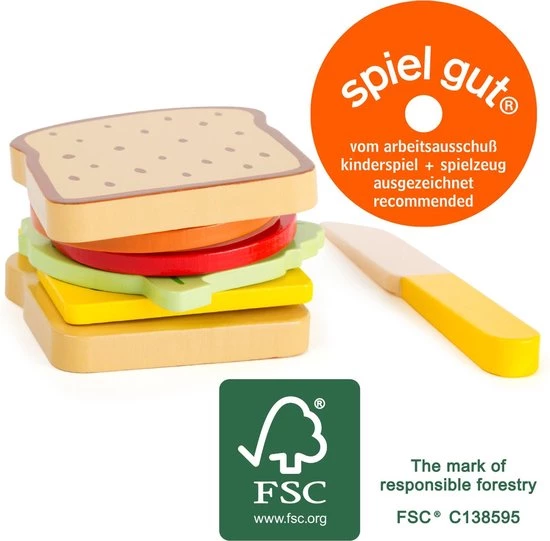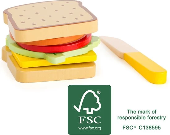 Het is tijd voor een snack! Met deze houten accessoires kunnen jonge picknickers een echt snackpakket samenstellen. De klittenbandbevestigingen houden de onderdelen bij elkaar en kunnen worden gescheiden met het houten mes. Dit product is gemaakt van FSC? 100-gecertificeerd hout. Zo kunnen jonge kinderen op een speelse manier leren hoe ze snacks kunnen maken. Wie heeft er honger?
