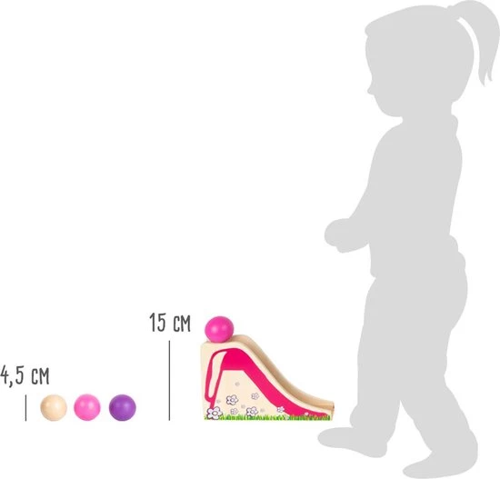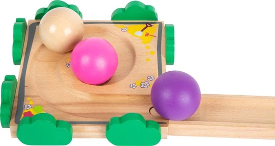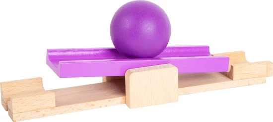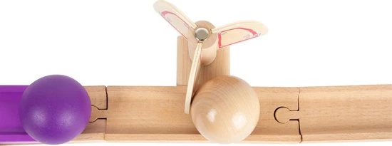 Met deze knikkerbaan leren kinderen spelenderwijs het oorzaak-en-gevolg principe kennen en wordt hun waarneming van rollende voorwerpen getraind. Door het eenvoudige en opvallende ontwerp zullen kinderen niet overweldigd worden, en de extra grote knikkers kunnen niet gemakkelijk worden ingeslikt. De verschillende onderdelen van deze speelset kunnen gemakkelijk door kleine kinderhandjes worden vastgepakt en in elkaar gezet. Het modulaire vorm-pas-principe biedt bovendien talrijke bouwmogelijkheden en stimuleert zo het plezier van experimenteren en fantasievol spelen bij kinderen. Oudere kinderen kunnen ook auto’s of knikkers over de houten rails laten rollen.
