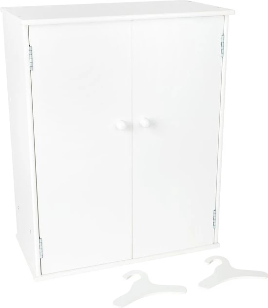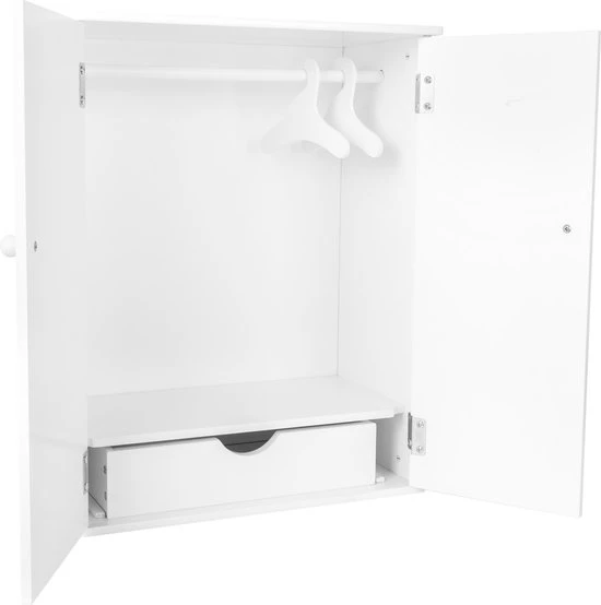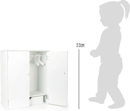 Met deze kledingkast van Small Foot leert je kleine poppenmama op speelse wijze om orde te houden. De kast heeft een hang- en leggedeelte en een lade zodat alles netjes opgeborgen kan worden.