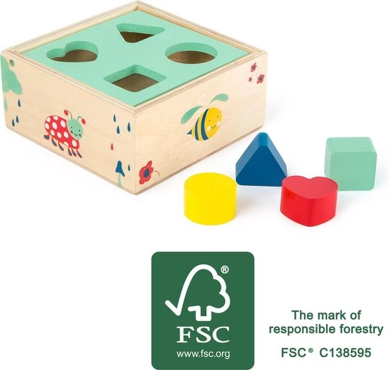 Vormen en kleuren worden op een speelse manier geleerd met deze houten vormenstoof van FSC? 100% gecertificeerd hout. De deksel is gemakkelijk te openen en te sluiten. De “Move it” productlijn heeft een grote aantrekkingskracht vanwege het gebruik van veel hout, zijn instinctiviteit en hoge speeltijdwaarde.