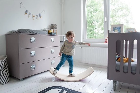 Een balansbord, een schommel, een glijbaan, een brug, een winkeltje, een hut, een opstapje, een racebaan, een loungestoel of toch de rug van een olifant?De Wobbel is het houten speelgoed dat jong en oud beweegt! Dit Balance Board is ideaal voor de allerkleinsten of kids die nog moeite met balanceren hebben. Het bord ondersteunt op een speelse maar zeer doeltreffende manier het lichaamsbewustzijn en het evenwicht.Kenmerken:Balance Boards helpen kinderen in hun ontwikkeling.Ze helpen kinderen hun gevoel voor evenwicht te ontwikkelen, maar ook het evenwichtsorgaan wordt gestimuleerd.Een balance board maakt een kind ook veel bewuster van zijn of haar fysieke lichaam en lichaamsdelen.Dit noemen we proprioceptie.Extra stabiel voor wiebelige beentjesExtra licht voor kleine armpjesOnverwoestbaar en gemakkelijk te reinigen gerecycleerd viltKinderen ontgroeien ‘m niet snel, want door zijn formaat kunnen er ook toffe skateboardachtige moves op gedaan wordenMateriaal:BeukenhoutPersvilt ( aan de onderzijde ) dat grotendeels uit gerecycleerde PET-flessen bestaat. De persvilt reduceert het geluid, voorkomt krassen op de vloer en op de Wobbel.Kindvriendelijke watergedragen lak.Afmetingen: ca. 87 x 30,5 centimeter.Gewicht Wobbel Pro: ca. 4,5 kiloHet geperste vilt vormt een mooi en uniek contrast met het hout.Gebruiksgewicht: tot 200 kilo.Een vraag die volwassenen vaak stellen bij speelgoed is: wat kan je ermee doen?Kinderen hebben nog een heel open kijk op de wereld en de dingen. De kracht van hun verbeelding is nagenoeg onbeperkt.De waarde van een stuk speelgoed wordt niet bepaald door wat het speelgoed kan doen, maar wel door wat een kind ermee kan doen.Een balance board wordt wat je maar wil en kan probleemloos geïntegreerd worden in allerlei kinderspelletjes!Dit open-ended speelgoed geeft kinderen steeds weer nieuwe kansen en mogelijkheden om te spelen, vaak in combinatie met ander speelgoed. Hierdoor wordt de creativiteit voortdurend gestimuleerd.Actie en ontspanningDe magie van een balance board is dat je er niet enkel heel actief mee kunt bezig zijn, maar ook dat het ook een knus plekje kan worden waar een kind weer tot rust kan komen, een plekje voor zichzelf…Aanbevolen voor kinderen vanaf de leeftijd van 2 jaar. Jongere kinderen kunnen het balanceerbord ook gebruiken onder toezicht van een volwassene.